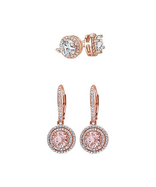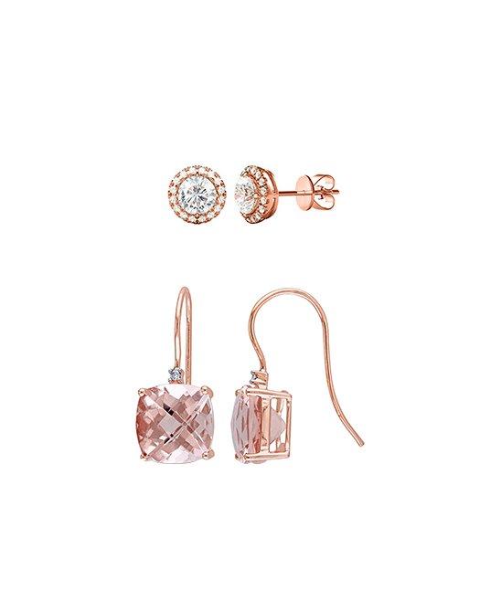 2Pairs- 14K Rose Gold Simulated Morganite & Earrings Set ITALY Design